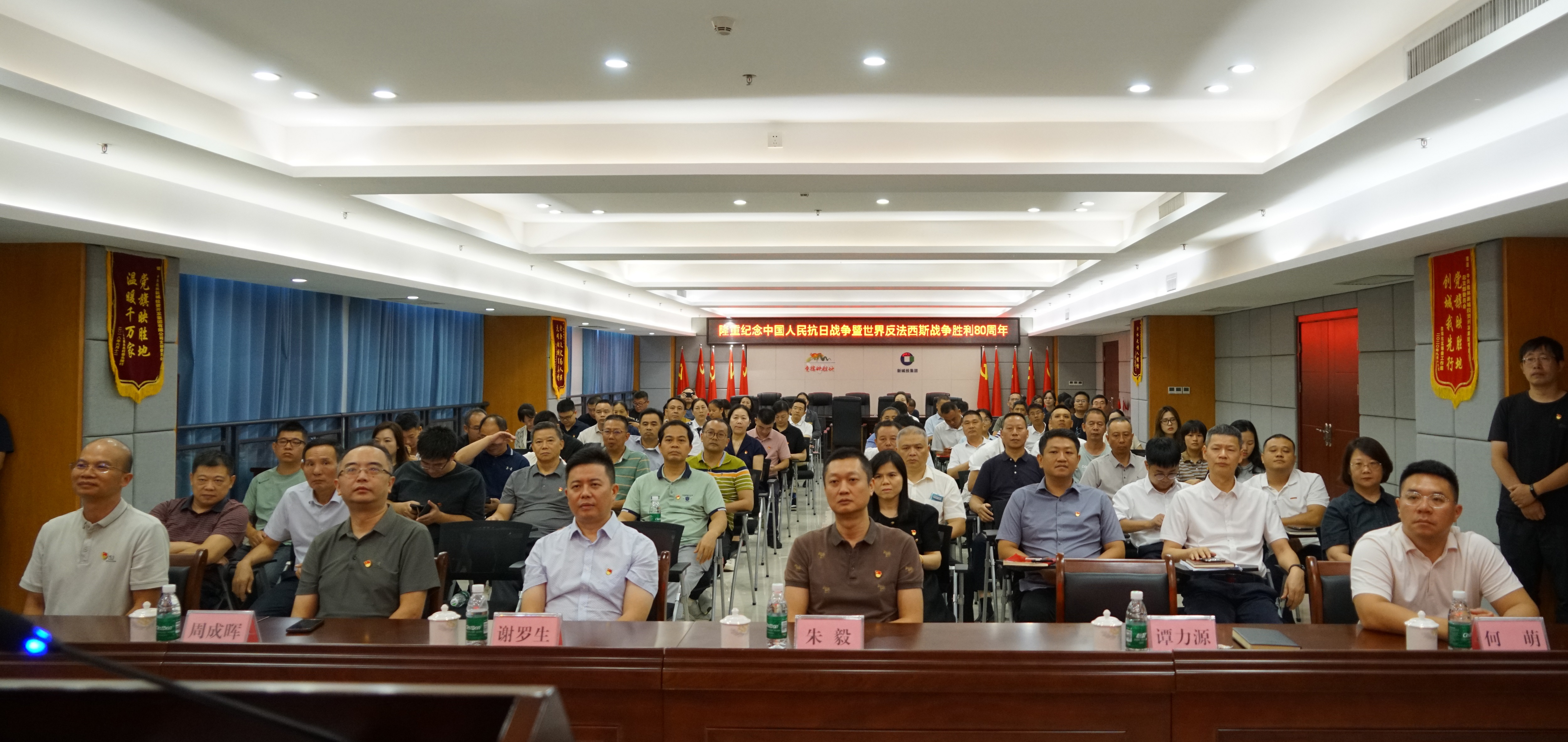 2025年9月3日上午,紀(jì)念中國人民抗日戰(zhàn)爭暨世界反法西斯戰(zhàn)爭勝利80周年大會在北京天安門廣場隆重舉行,新城投集團(tuán)與結(jié)對共建單位廣西實體經(jīng)濟(jì)服務(wù)員工作隊駐桂林市工作隊在新城投集團(tuán)1001會議室共同組織觀看直播。工作隊職工、新城投集團(tuán)領(lǐng)導(dǎo)班子、全體黨員、中層及以上管理干部參加活動。