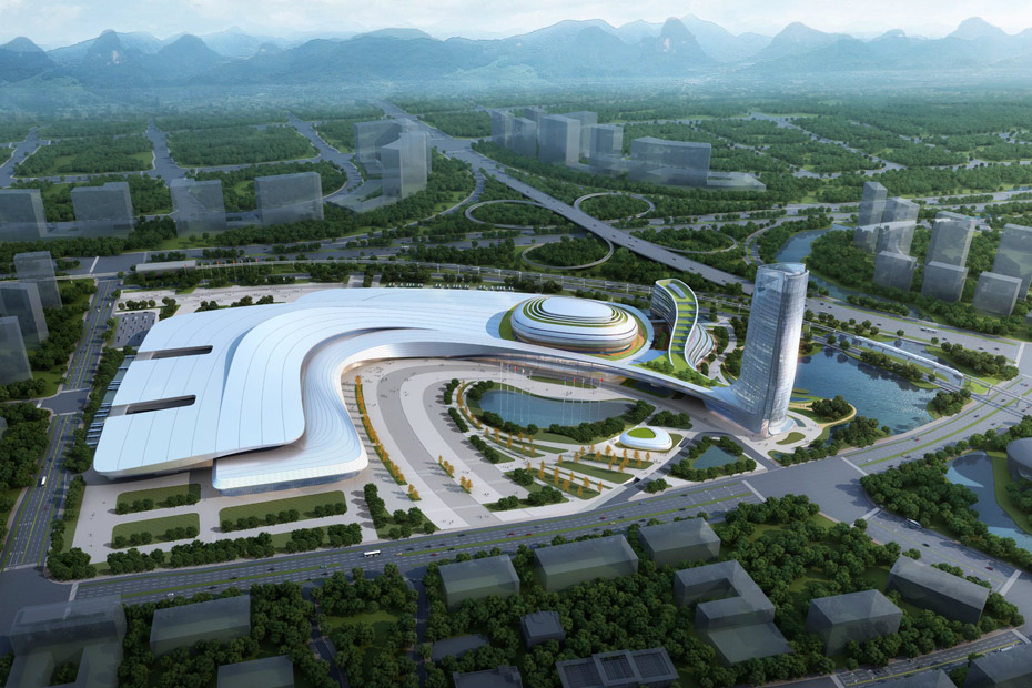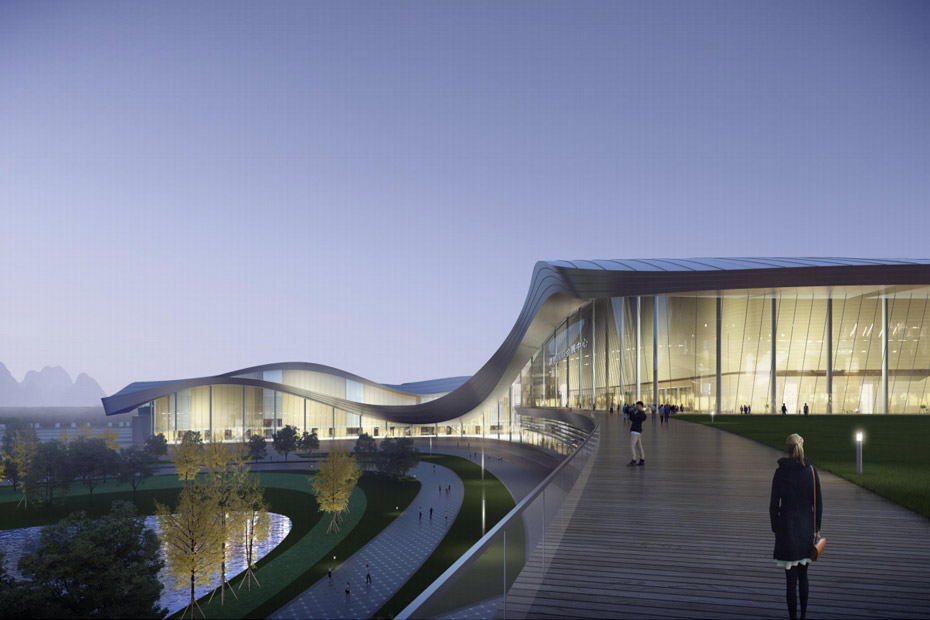 桂林國際會展中心是集會議、會展、商業(yè)、接待為一體的大型綜合性建筑,規(guī)劃用地面積約750畝,一期總建筑面積約39.7萬平方米,其中一期室內凈展面積為6萬平方米,室外展面積為5萬平方米,會議中心凈使用面積約1.5萬平方米,第一接待中心(四星標準,含350間客房)以及第二接待中心(五星標準,含450間客房)。